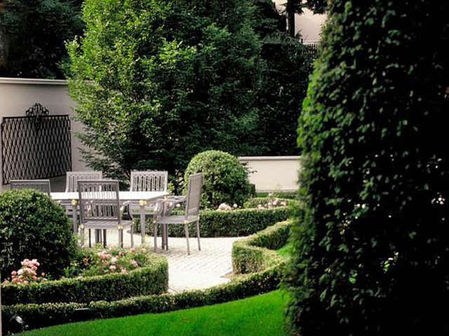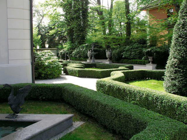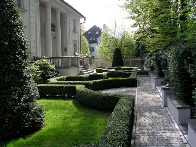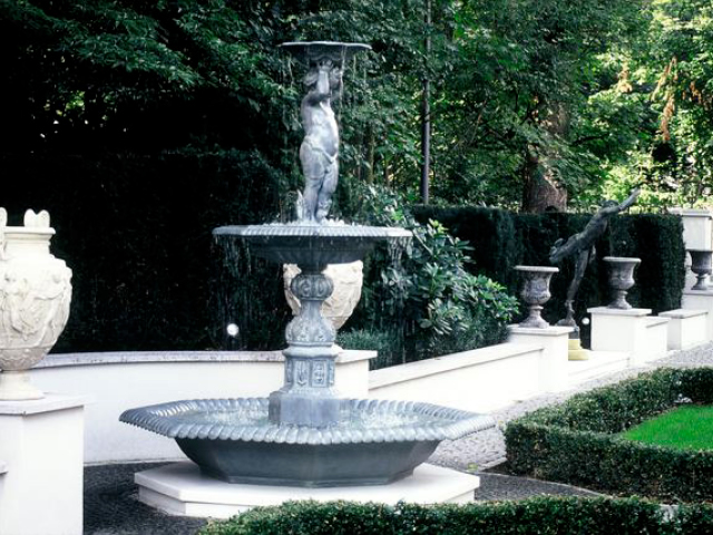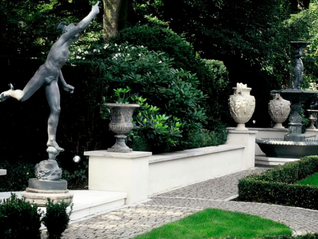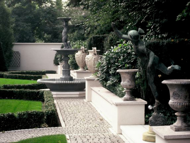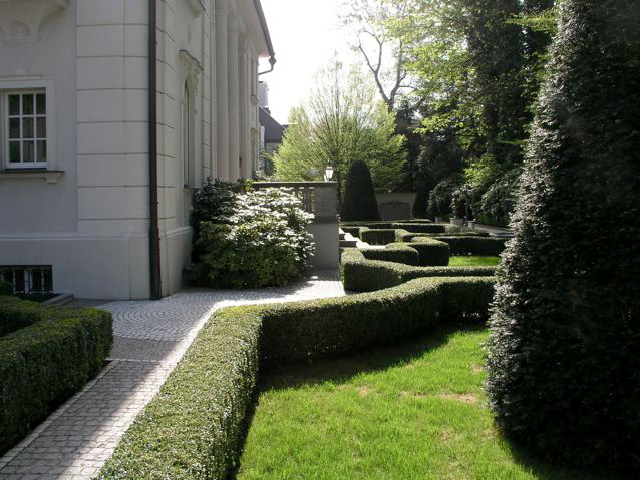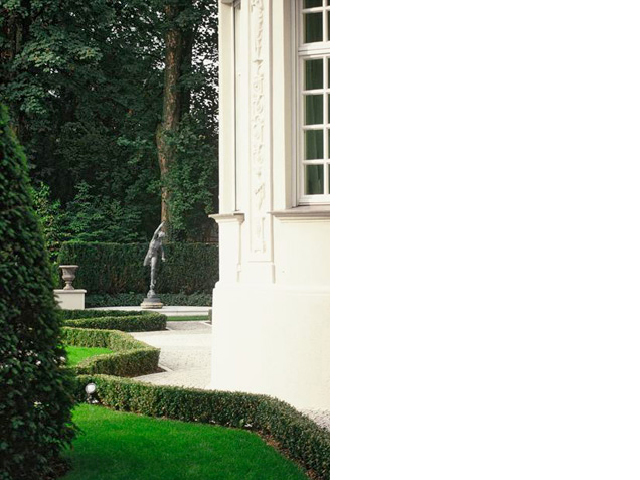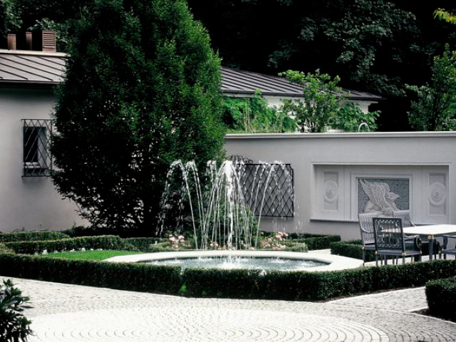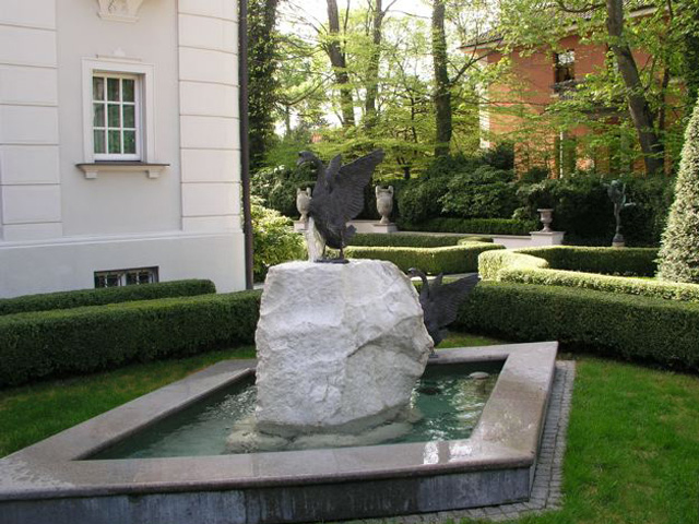 Der Außenraum einer Gründerzeit-Villa wurde als formaler Garten konzipiert und atmet die Strenge der Schloßgärten des 17. Jahrhunderts. Drei völlig unterschiedliche Wasserspiele prägen die wichtigsten Bereiche des Gartens und durch das Geräusch und die Bewegung des Wassers wird ein Teil dieser Strenge genommen und führt zu einer Verschiebung der Wahrnehmung.