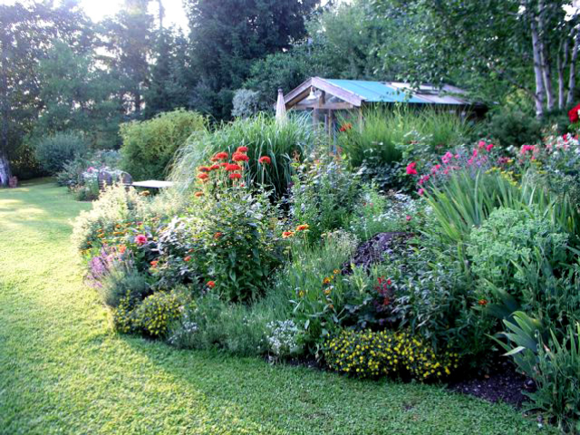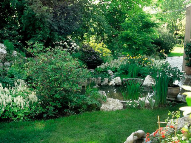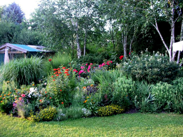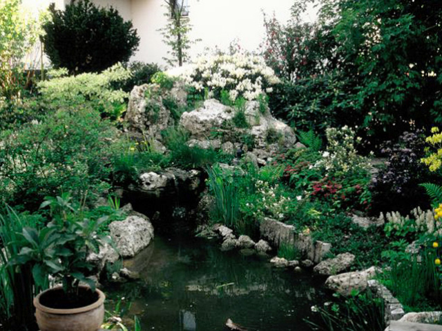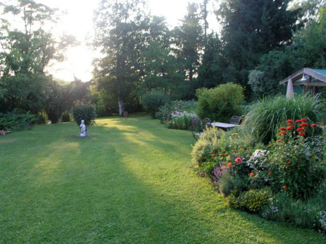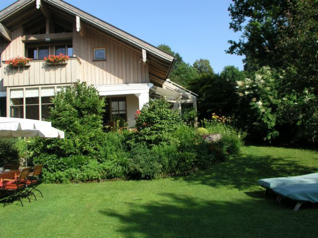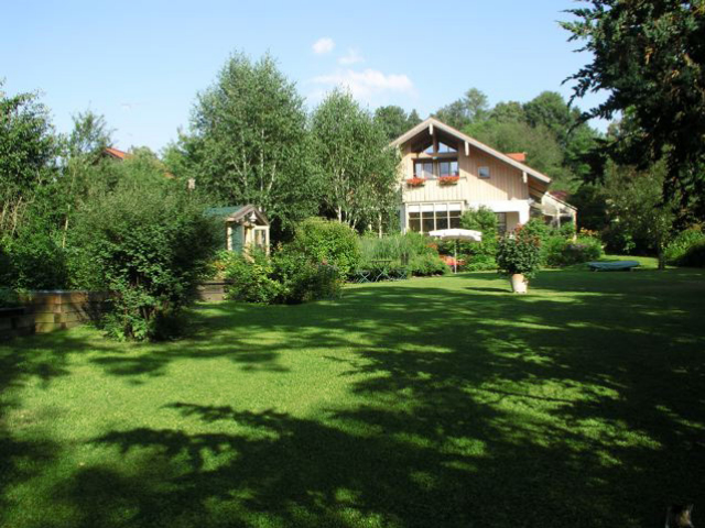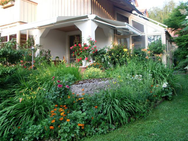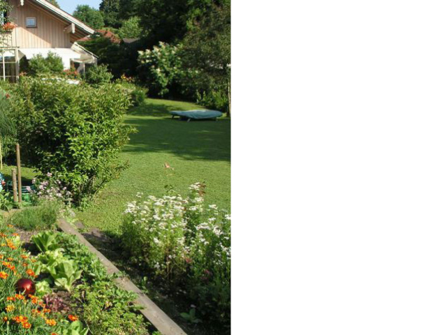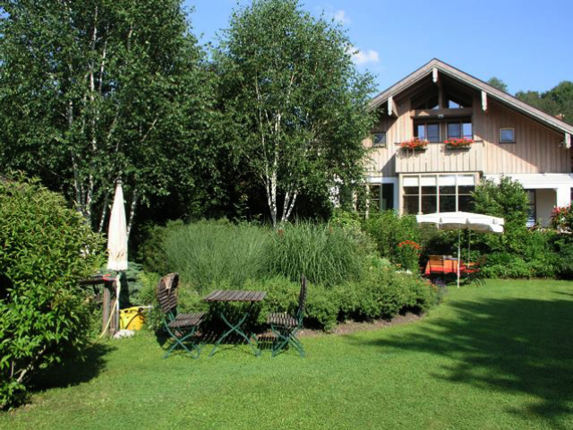 Ein großer, üppig mit Stauden, Sträuchern und Gehölzen bepflanzter, romantischer Hausgarten im Alpenvorland. Viele unterschiedlichst gestaltete Bereiche wie Nutzgarten mit Gewächshaus, Staudengarten, kleiner Teich mit Wasserfall, Terrassenflächen und großzügiger Eingangsbereich führen zu einem rundum harmonischen Gesamteindruck.